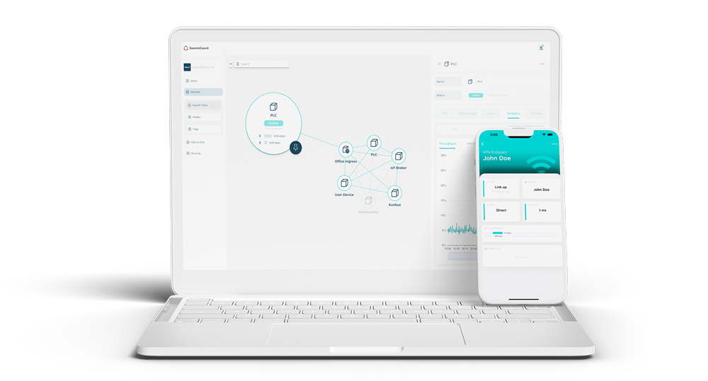 Your data is safeguarded with cutting-edge cryptographic algorithms and SwarmGuard’s unique key distribution method. Only authorized devices are permitted to join your overlay network. Furthermore, your end-to-end encrypted data traffic is routed directly between your devices, bypassing any cloud infrastructure.